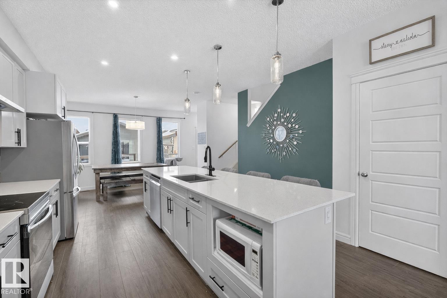 Welcome to this beautifully maintained two-storey home, perfectly nestled in the sought-after community of South Pointe. This bright and spacious main floor offers an open layout with stylish upgrades throughout, including a main floor fireplace great for curling up on cool nights. The chefs kitchen has it all: quartz countertops, stainless steel appliances, and an eat-up island that naturally becomes the heart of the home, ideal for morning coffee or hosting friends. Upstairs is complete with your master suite, a walk-in closet and your own ensuite. 2 bedrooms, a 4-piece bath, and laundry complete the upstairs. Step outside to the west-facing backyard and soak in warm evening sun on the two-tiered deck, perfect for summer entertaining or quiet nights under the sky. Walking distance to playgrounds and South Pointe K-9 School! Come experience it for yourself!