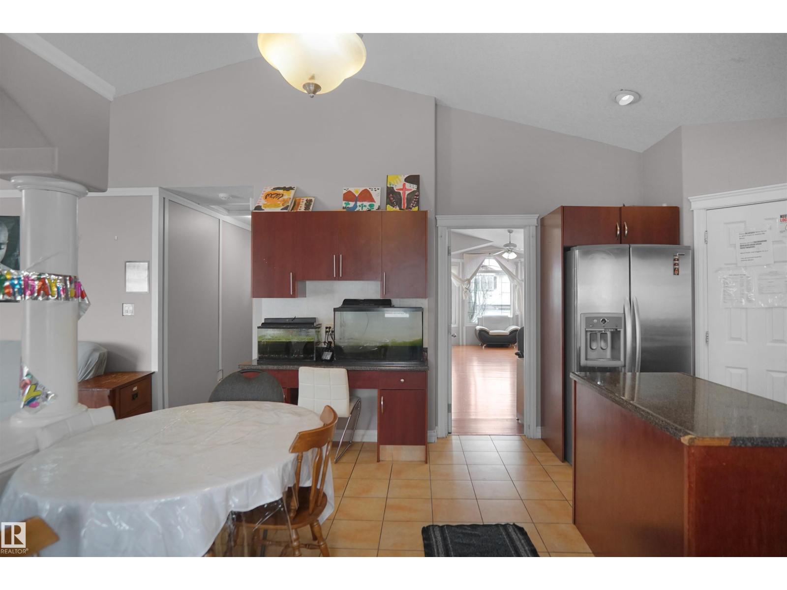 Located in a desirable family-oriented neighbourhood, this home offers a functional open-concept layout with vaulted ceilings and honey oak hardwood flooring throughout. The spacious dining area is ideal for family gatherings and entertaining.The generous primary bedroom features a walk-in closet and a full ensuite with a corner soaker tub and separate shower. The kitchen is the highlight of the home, offering deep cherry cabinetry, marble-look countertops, and a matching side work station.The family room is warm and inviting with a decorative gas fireplace. The basement offers excellent development potential with 9-foot ceilings, large windows, and direct access to the garage, with future possibility for an in-law suite. (id:2469)