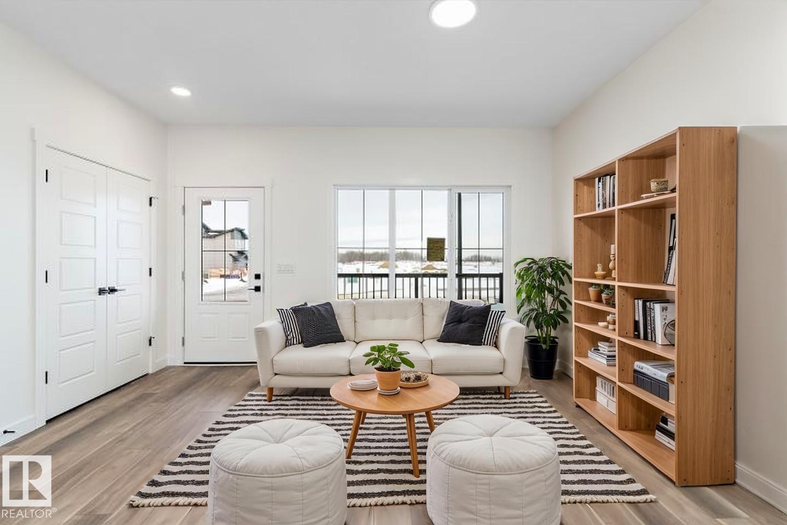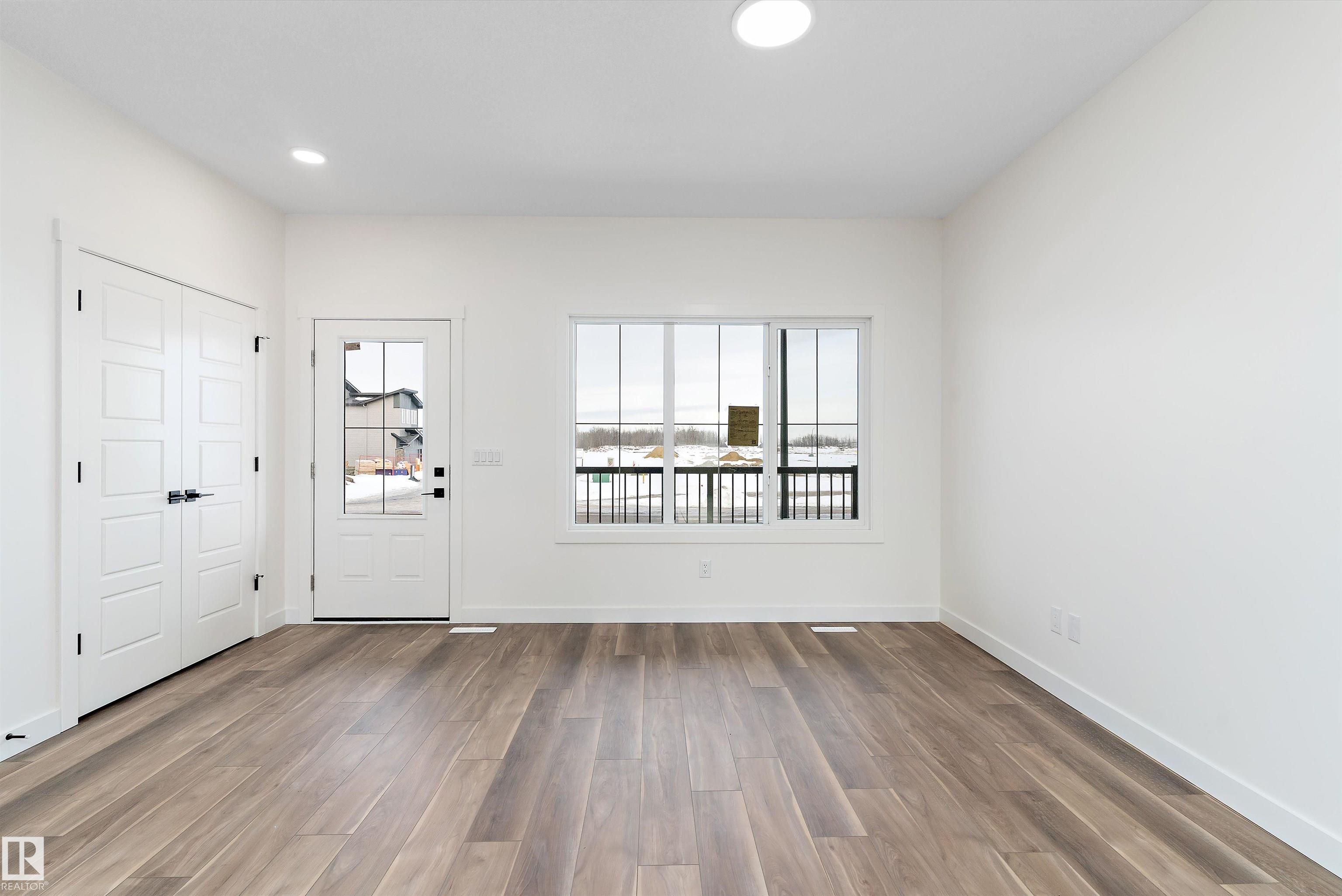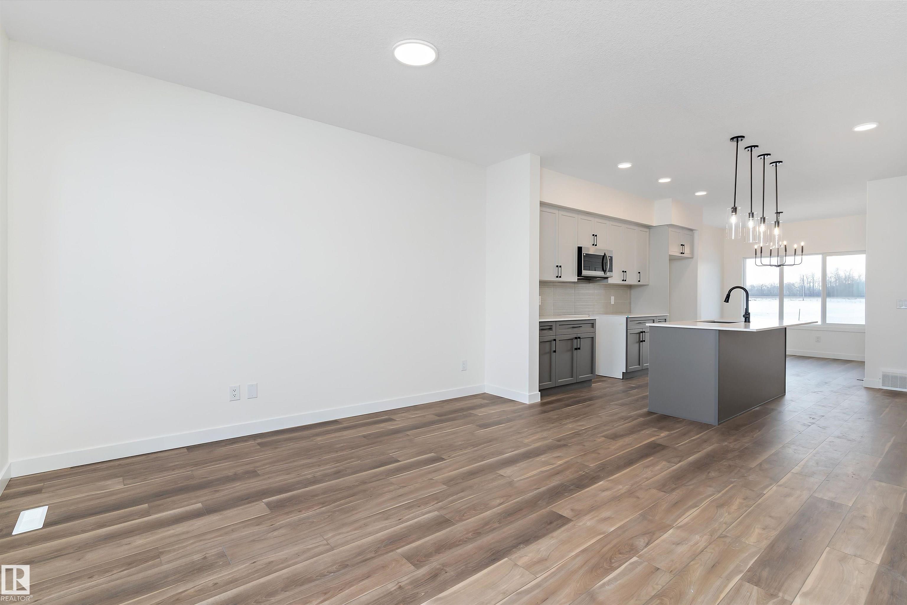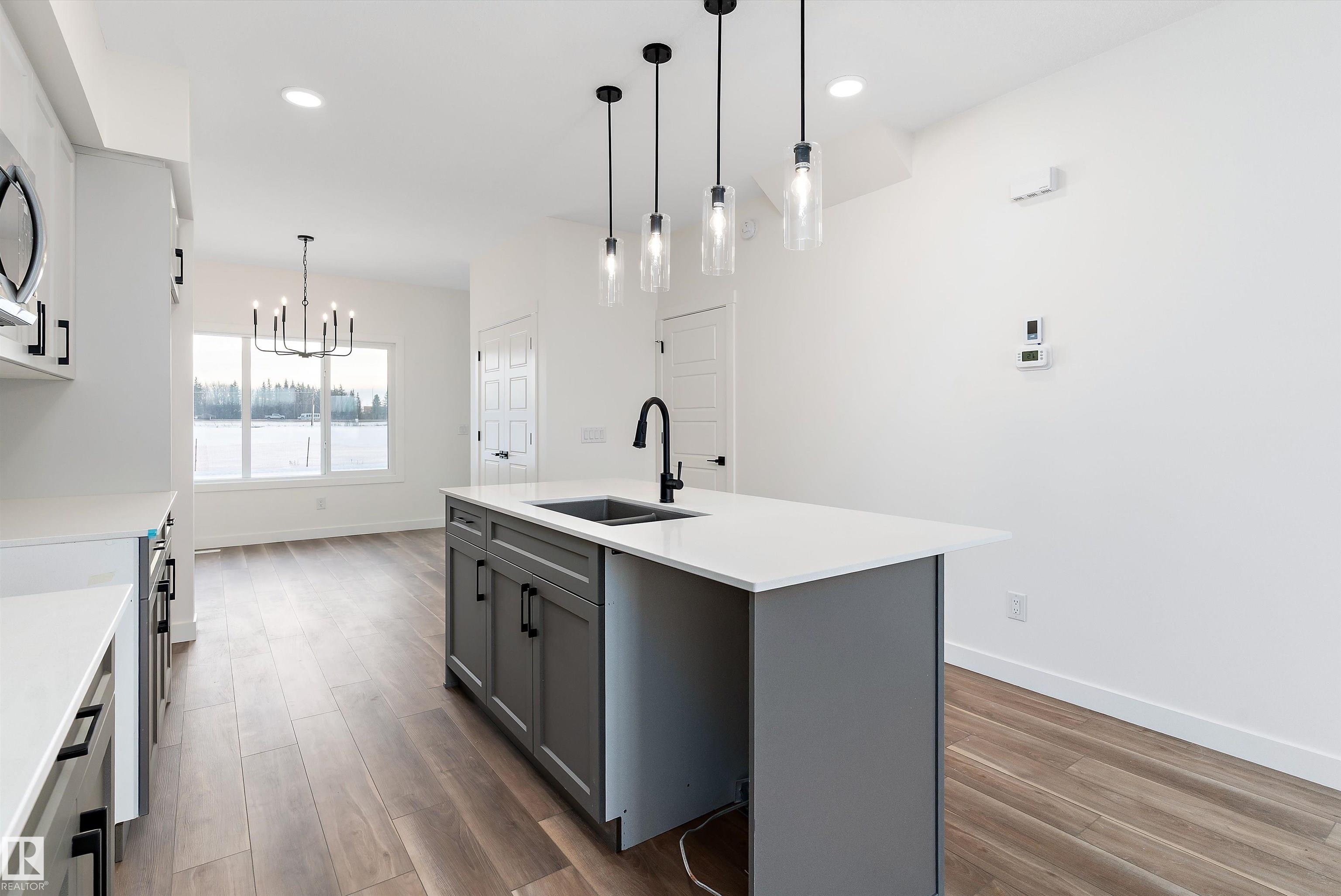 Introducing the Stellar, a stylish and thoughtfully designed home that blends comfort with modern functionality. The main floor features durable luxury vinyl plank flooring and 9’ ceilings throughout, beginning with a welcoming foyer and coat closet that leads into a bright great room filled with natural light from a large front window. The centrally located kitchen offers quartz countertops, an undermount composite sink, a functional island with eating ledge, upgraded Thermofoil cabinetry with soft-close hardware, and a spacious pantry. At the rear of the home, the dining area enjoys large windows overlooking the backyard, along with a conveniently placed powder room and back entry leading to a generous yard and parking pad, with the option to add a detached two-car garage. Upstairs features an open loft, a primary suite with walk-in closet and 3-piece ensuite, plus two additional bedrooms, a main 3-piece bath, and a stackable laundry closet. Upgraded black plumbing and lighting fixtures are included.