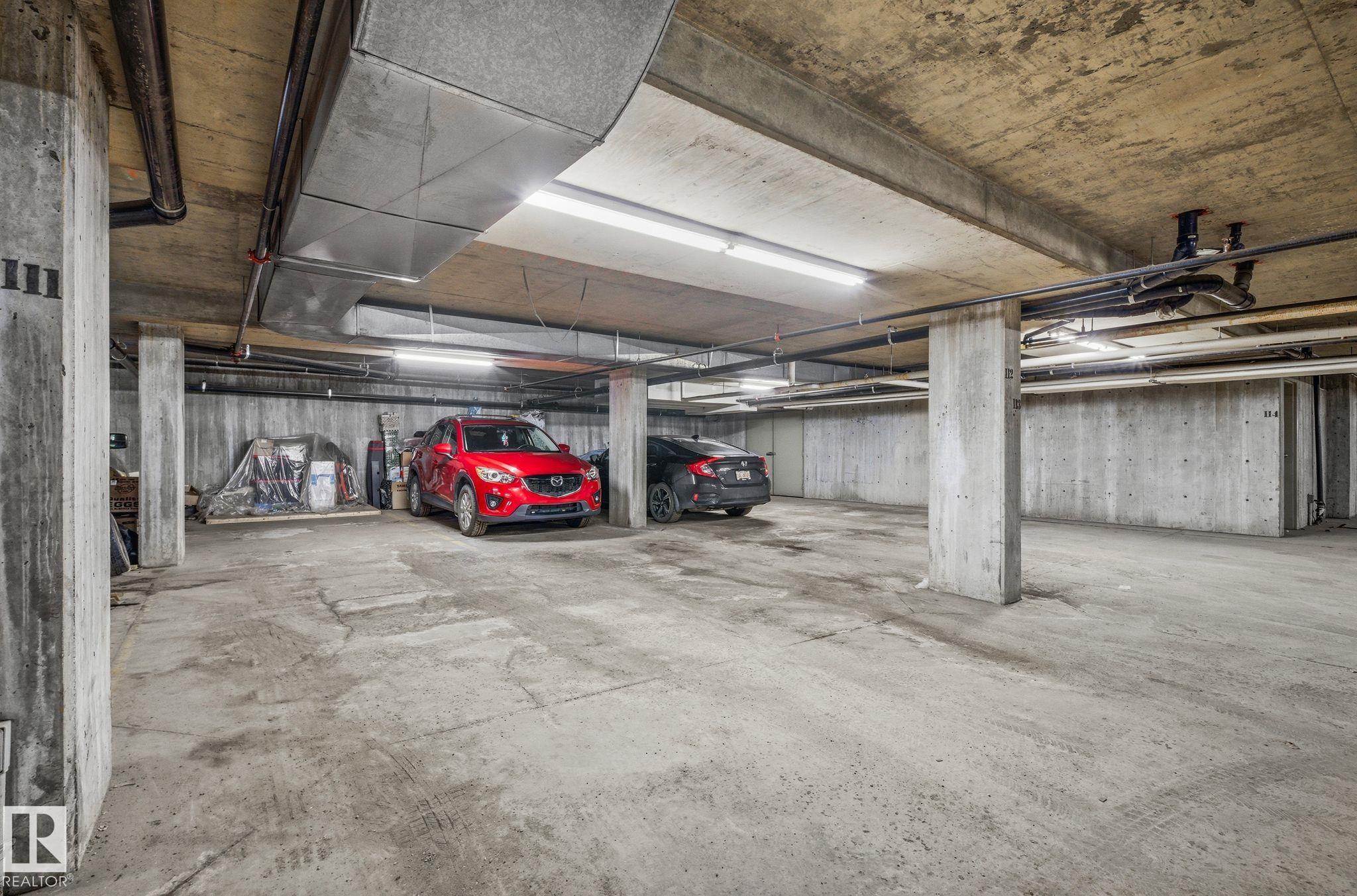 BUILDER SIZE 984 SQFT, TOP FLOOR, CORNER LUXURY living in the heart of West Edmonton. This executive suite offers rare sophistication with QUARTZ countertops, premium stainless steel appliances (Fridge warranty until May 2030), rich vinyl plank flooring, plush LUXURY carpet, and UPGRADED tile. OVERSIZED WINDOWS flood the space with natural light, creating an elevated, airy ambiance that extends onto your private balcony. Enjoy the convenience and exclusivity of TWO TITLED heated underground parking stalls, plus abundant visitor parking for guests. Set within a secure, well managed, and quiet building, this residence delivers the perfect blend of refinement, comfort, and effortless MAINTENANCE FREE living—steps from the city’s finest dining, shopping, and amenities in Mayfield Common and West Edmonton Mall.